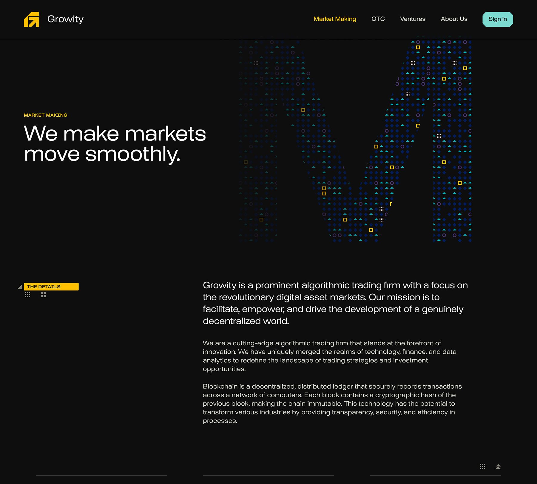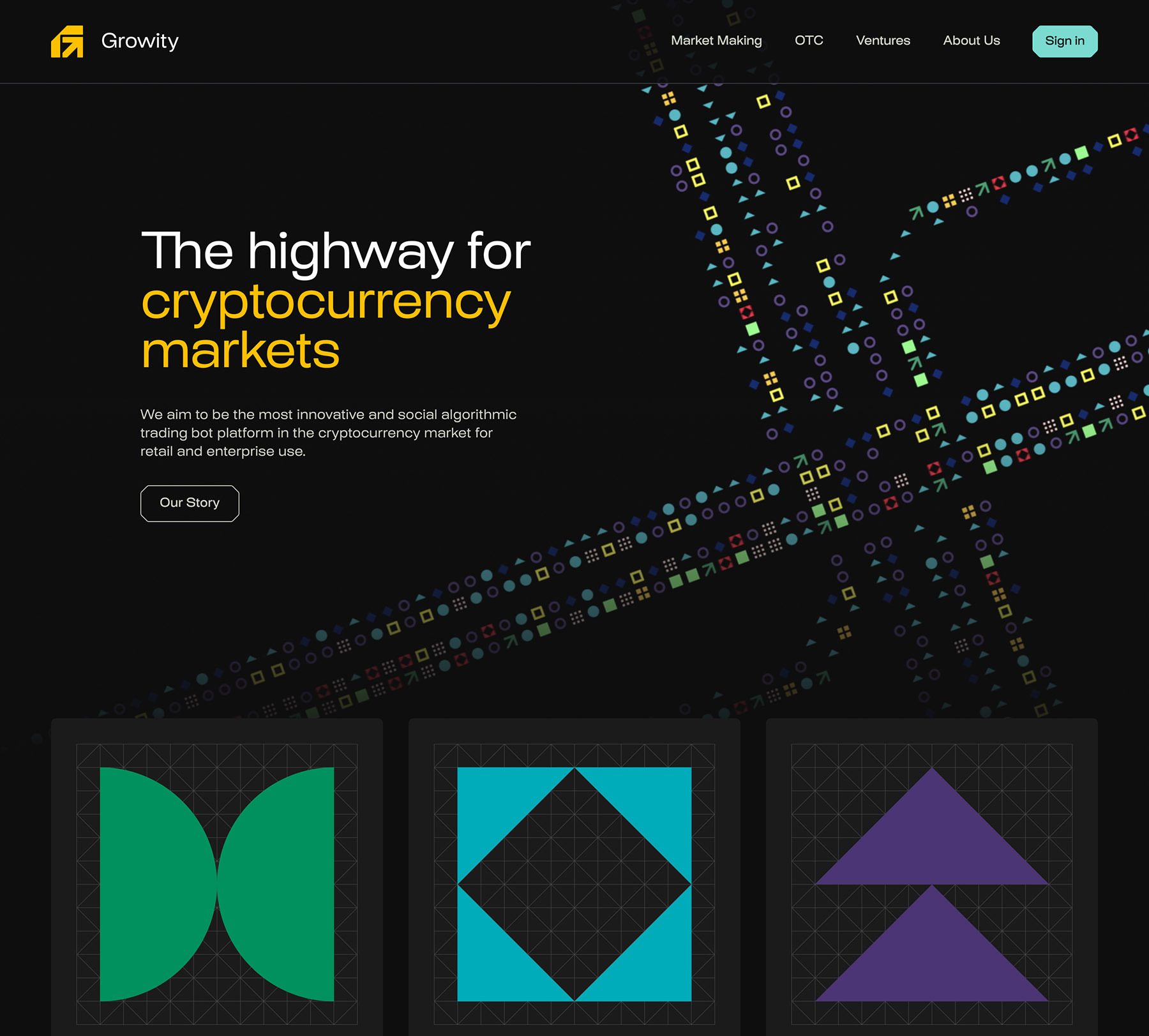 We teamed up with Growity to help build their company from the ground up. Together, we crafted a data-driven brand identity inspired by the world of algorithmic trading. A refreshed funding deck played a key role in securing multiple investments, with even more interest rolling in. By delivering a well-organized digital brand environment with a cohesive look across online and offline, we made it easy for Growity’s in-house team to pick up and carry forward without a hitch.